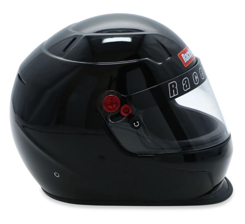 PRO20 é um capacete de corrida de automóveis full face com classificação Snell SA2020 que incorpora um estilo contemporâneo com técnicas de produção modernas. O casco é construído usando materiais compostos pré-impregnados colocados em moldes de aço pressurizado para obter a melhor combinação de leveza e resistência. Insertos HANS/HNR rosqueados M6 reforçados são acoplados ao casco junto com um forro de poliestireno expandido (EPS). Postes de ancoragem HANS ou outros dispositivos de contenção de cabeça e pescoço (não incluídos) podem ser facilmente fixados na parte externa do capacete usando os insertos rosqueados M6 instalados. O protetor facial de policarbonato de 3 mm sem distorção possui um kit de pivô de alumínio anodizado vermelho, postes TearOff com catraca manual e uma junta de silicone para vedar poeira e sujeira. Um amplo orifício para os olhos fornece boa visão periférica e permite o uso de óculos pessoais. A classificação Snell SA significa que o interior, a pintura e a tira do queixo de kevlar são todos retardantes de fogo, então o capacete RaceQuip PRO20 é adequado para uso em todas as formas de automobilismo. O interior Nomex® com ajuste confortável, juntamente com as saídas de ar de exaustão na parte superior e traseira da concha, ajudam a manter seu couro cabeludo fresco. Todos esses recursos são envoltos em uma concha composta de FRP com design aerodinâmico elegante, com um spoiler de queixo de tamanho médio.